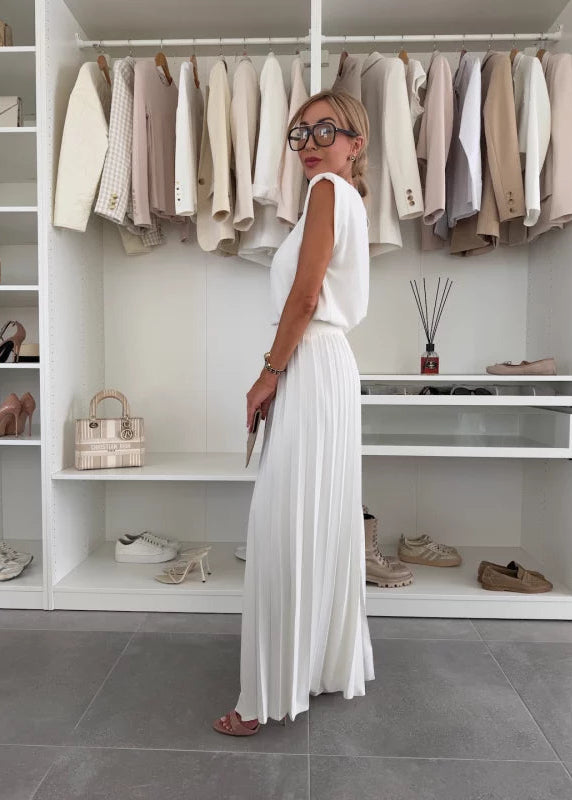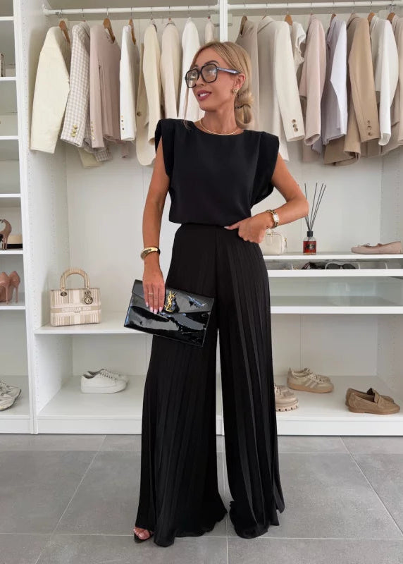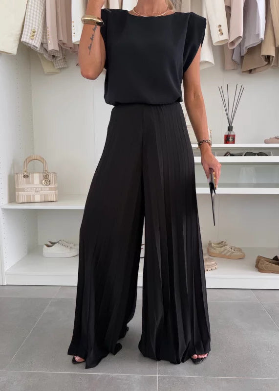 Le haut sans manches à col en V sublime la silhouette tout en offrant une allure féminine et moderne. Sa coupe flatteuse met en valeur le décolleté sans en faire trop. Associé à un pantalon ample à taille élastique, il assure un confort absolu tout au long de la journée — fini les pantalons qui serrent ou gênent les mouvements.