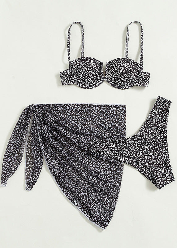 Trikini Léopard 3 Pièces – Armatures & Jupe Transparente