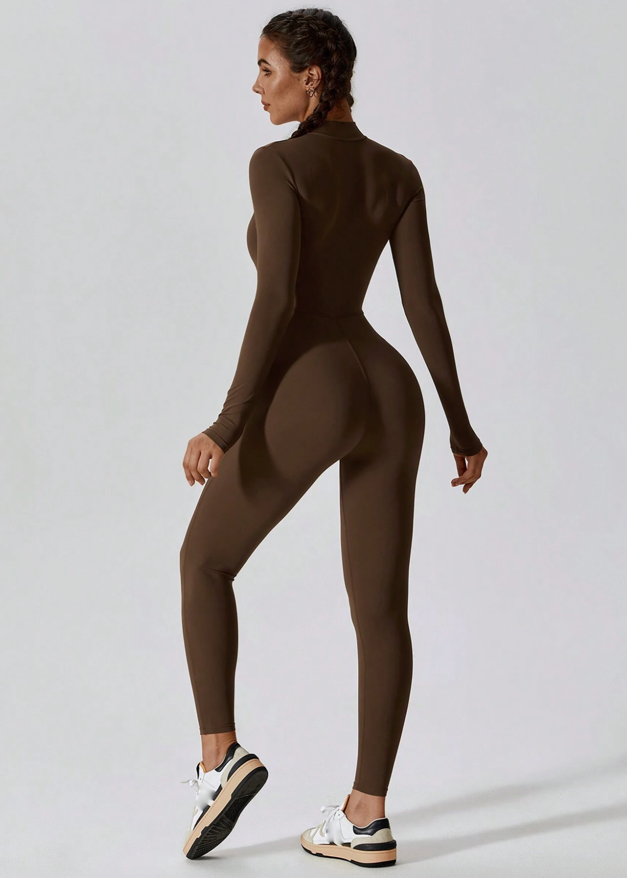 Un indispensable de la garde-robe moderne, cette combinaison une pièce incarne parfaitement l’équilibre entre style et confort. Sa coupe ajustée met en valeur les courbes avec élégance, tandis que son zip frontal pratique et séduisant apporte une touche d’originalité.