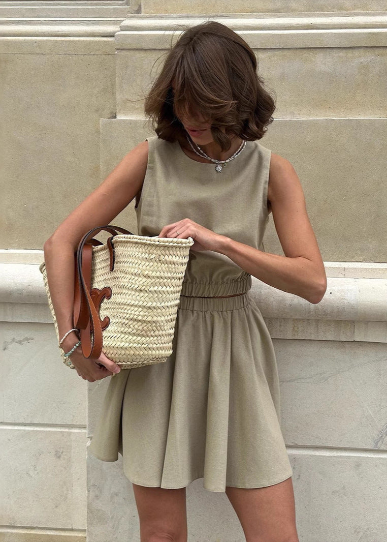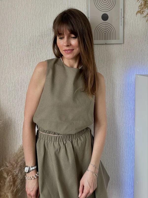 Cet ensemble deux pièces sans manches en lin est l’allié parfait de vos journées ensoleillées. Léger, respirant et stylé, il combine parfaitement confort et élégance avec sa taille élastique et sa jupe plissée fluide. Idéal pour une promenade en ville, une journée plage ou un brunch estival.