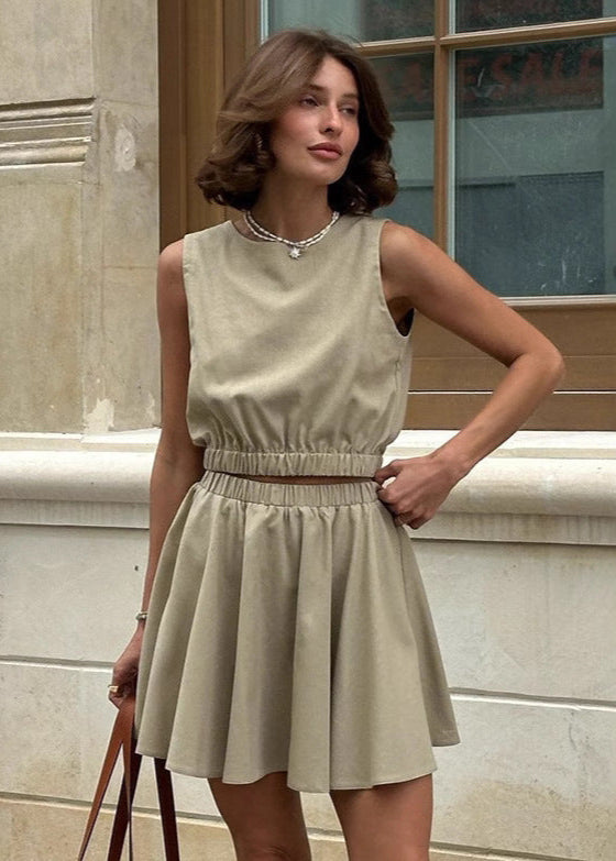 - Ensemble : Haut sans manches + Jupe courte taille élastique