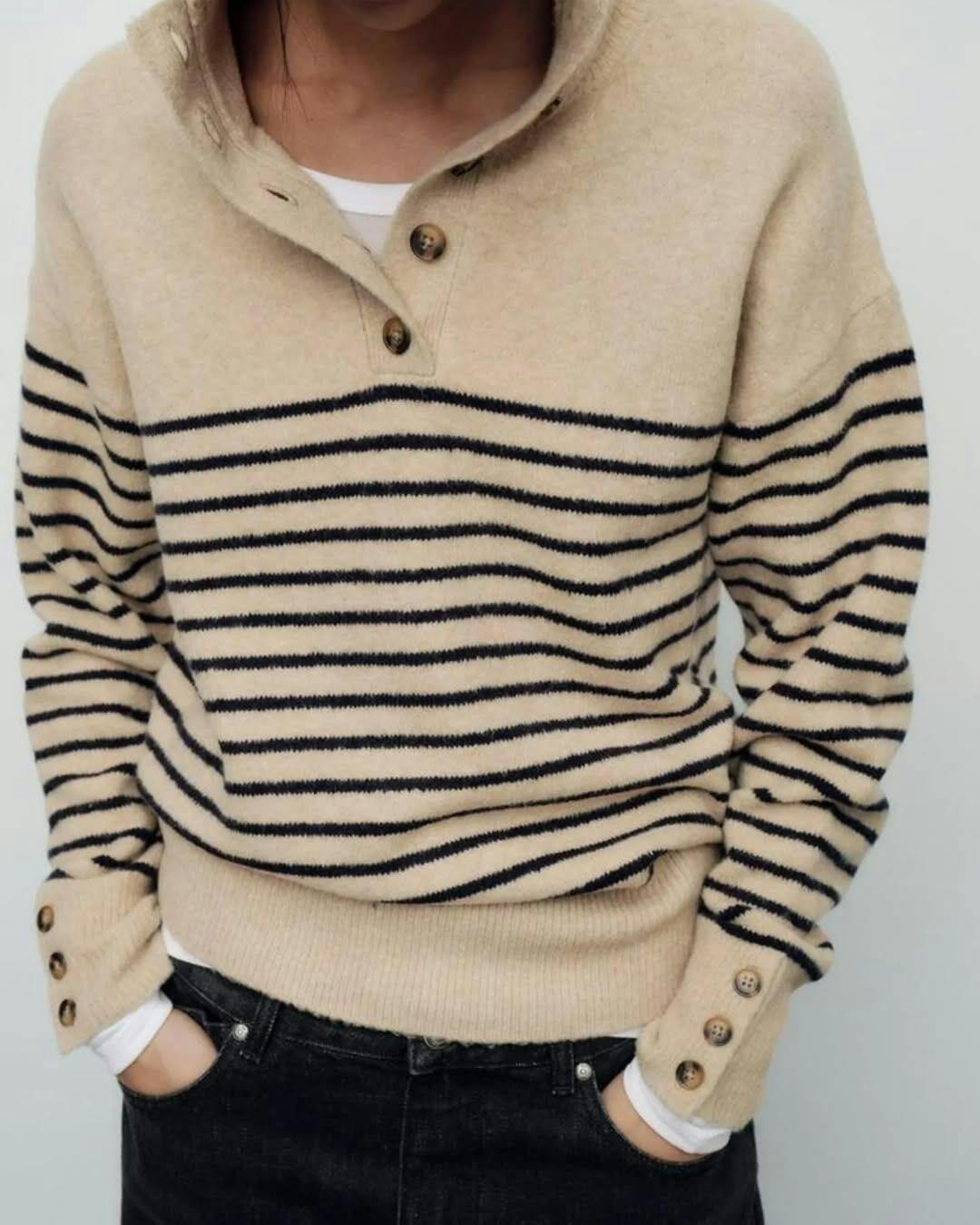Apportez une touche élégante et cosy à vos looks avec ce pull à col montant boutonné. Sa coupe moderne et ses finitions soignées en font une pièce parfaite pour traverser la saison avec style, tout en restant facile à porter au quotidien.