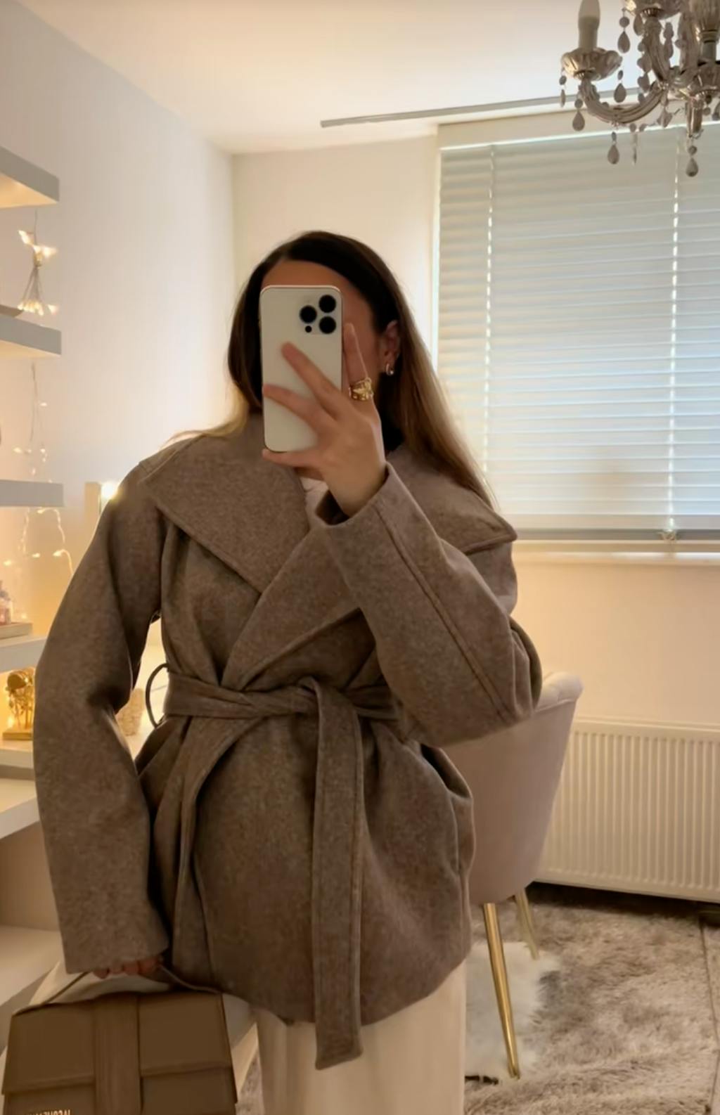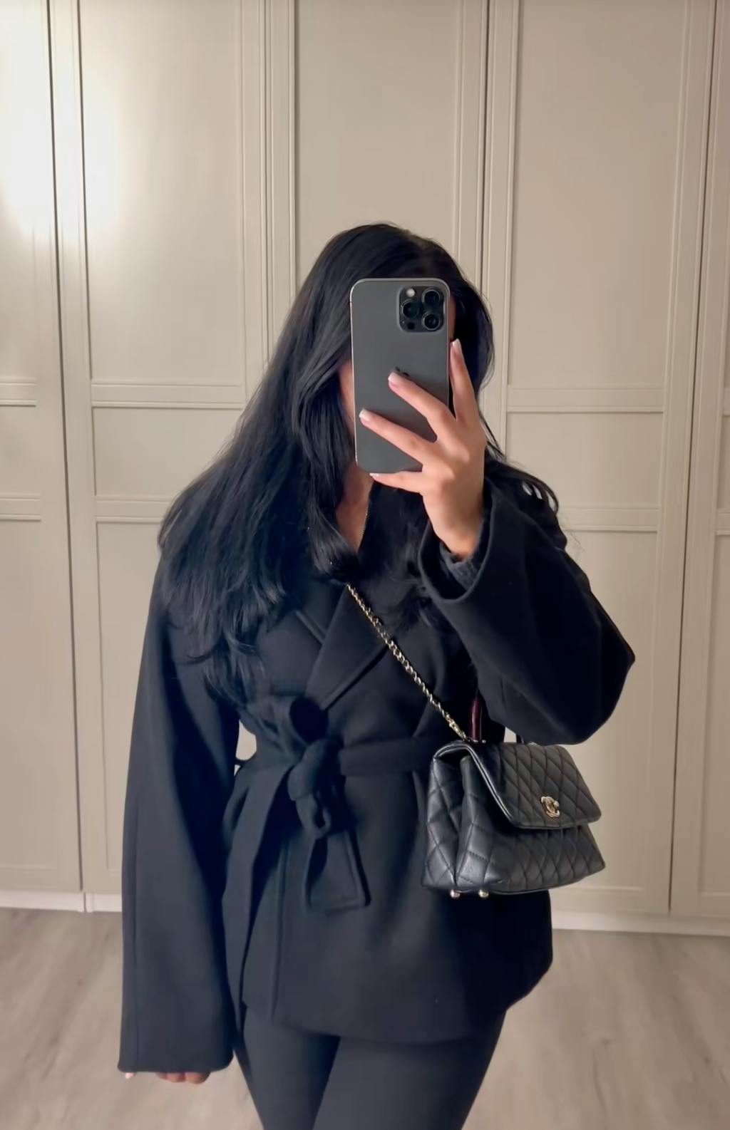 Ses manches longues régulières et sa ceinture à nouer permettent d’ajuster la coupe selon vos envies. Chaque détail, des finitions soignées au tombé impeccable, fait de cette veste une pièce à la fois tendance et féminine.