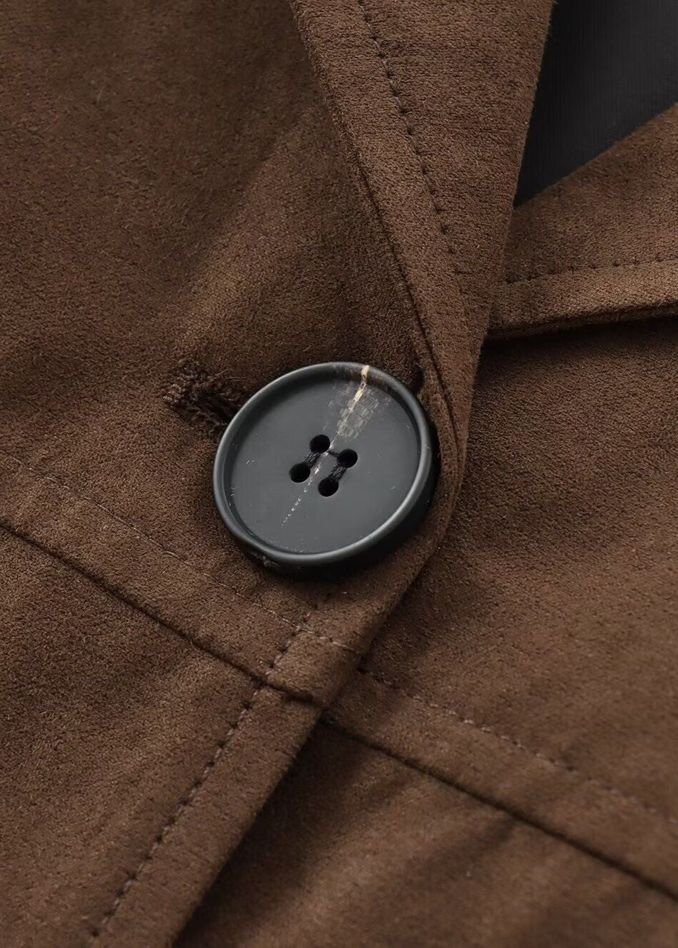 Conçue en daim doux et raffiné, elle offre un toucher velouté et un tombé impeccable. Ses boutons contrastés et ses poches plaquées pratiques apportent une note de caractère tout en préservant une allure chic et soignée.