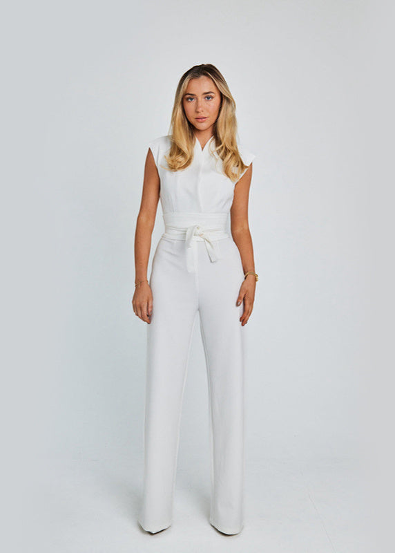 Inspirée du vestiaire tailleur, cette combinaison au style épuré sublime la silhouette avec sa taille haute ceinturée et son col structuré. Parfaite pour les femmes qui veulent imposer leur style avec raffinement, que ce soit au bureau, en réunion ou pour une soirée habillée.
